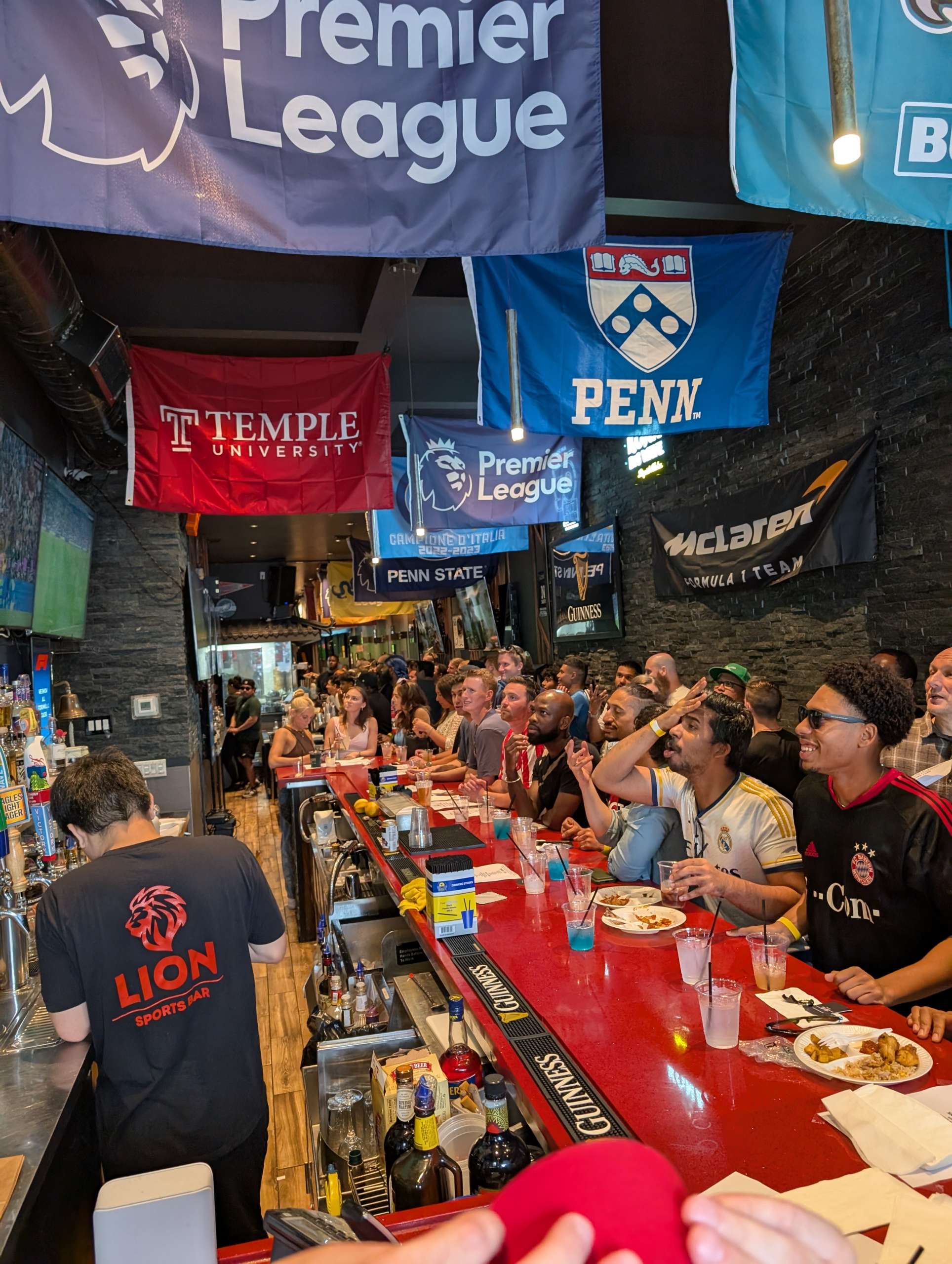 Lion Sports Bar is a Philadelphia sports bar known for its strong soccer following, major match watch parties, and full game day atmosphere. We are located just steps from the Pennsylvania Convention Center and serve fans from Center City, Chinatown, the surrounding Philadelphia region, and visiting supporters from around the world.